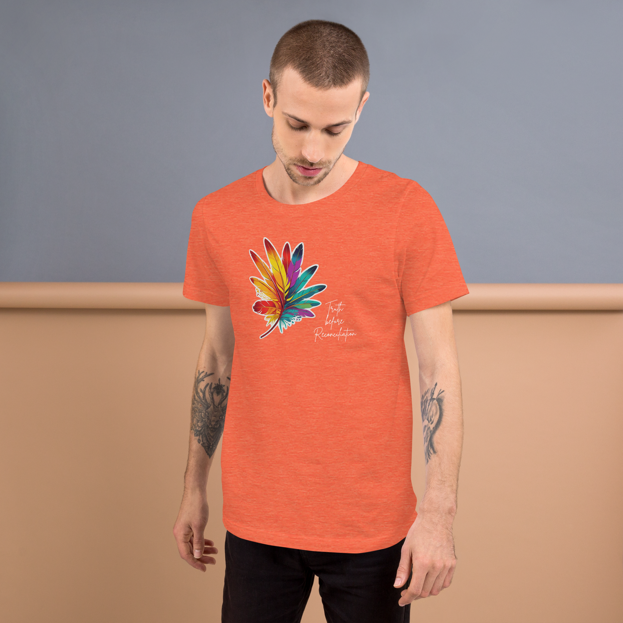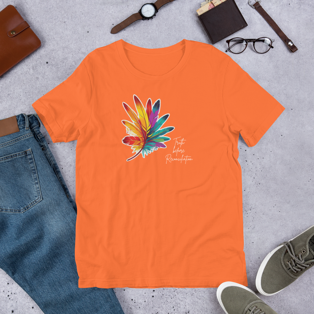 The “Truth Before Reconciliation” T-Shirt is a powerful and intentional reminder that the first step toward healing is acknowledging the full reality of the past. This statement tee centers Indigenous voices and honors the deep pain, strength, and resilience of generations impacted by colonial violence, residential schools, and systemic injustice.